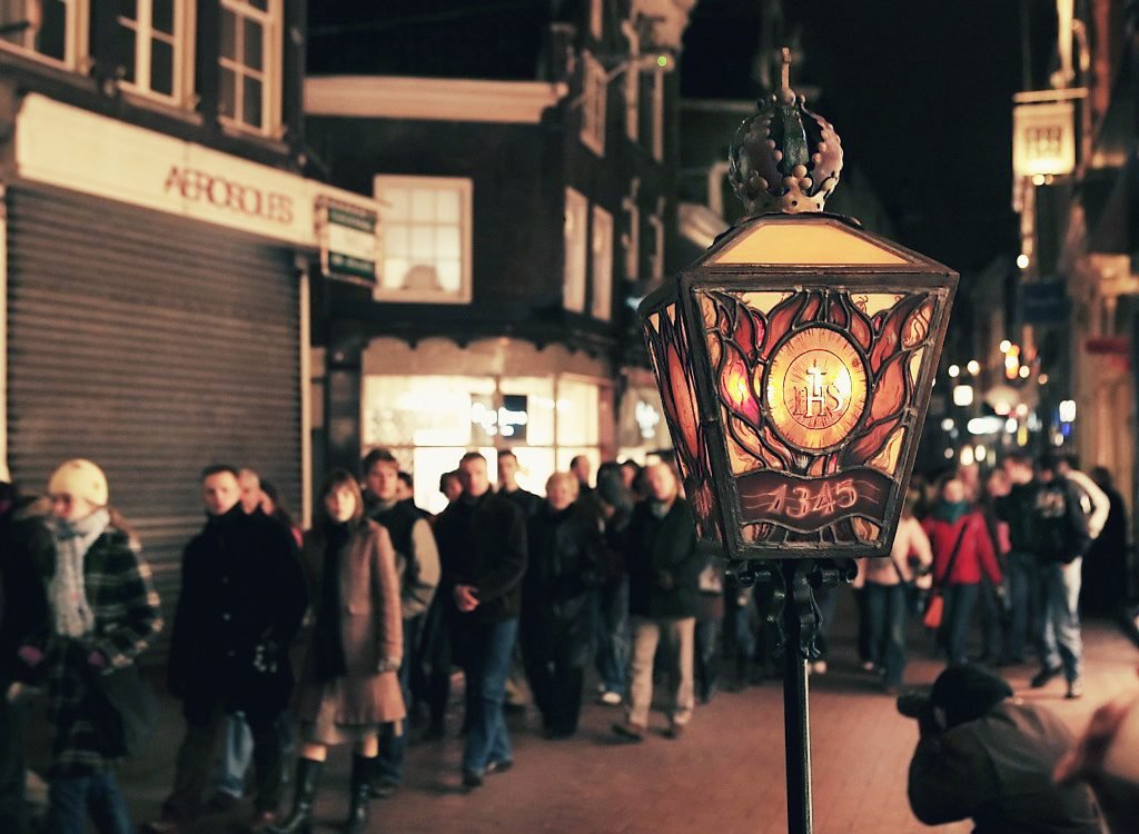 The First Supper invites you to together walk “Stille Omgang”, a late-night walk in the historic heart of Amsterdam. The walk honors the Miracle of Amsterdam that occurred in 1345, which turned Amsterdam into a destination of pilgrimage for centuries. The walk is a longstanding annual tradition attracting thousands of pilgrims from around the country who arrive by wheel and for quite a few from where they live… by foot.
